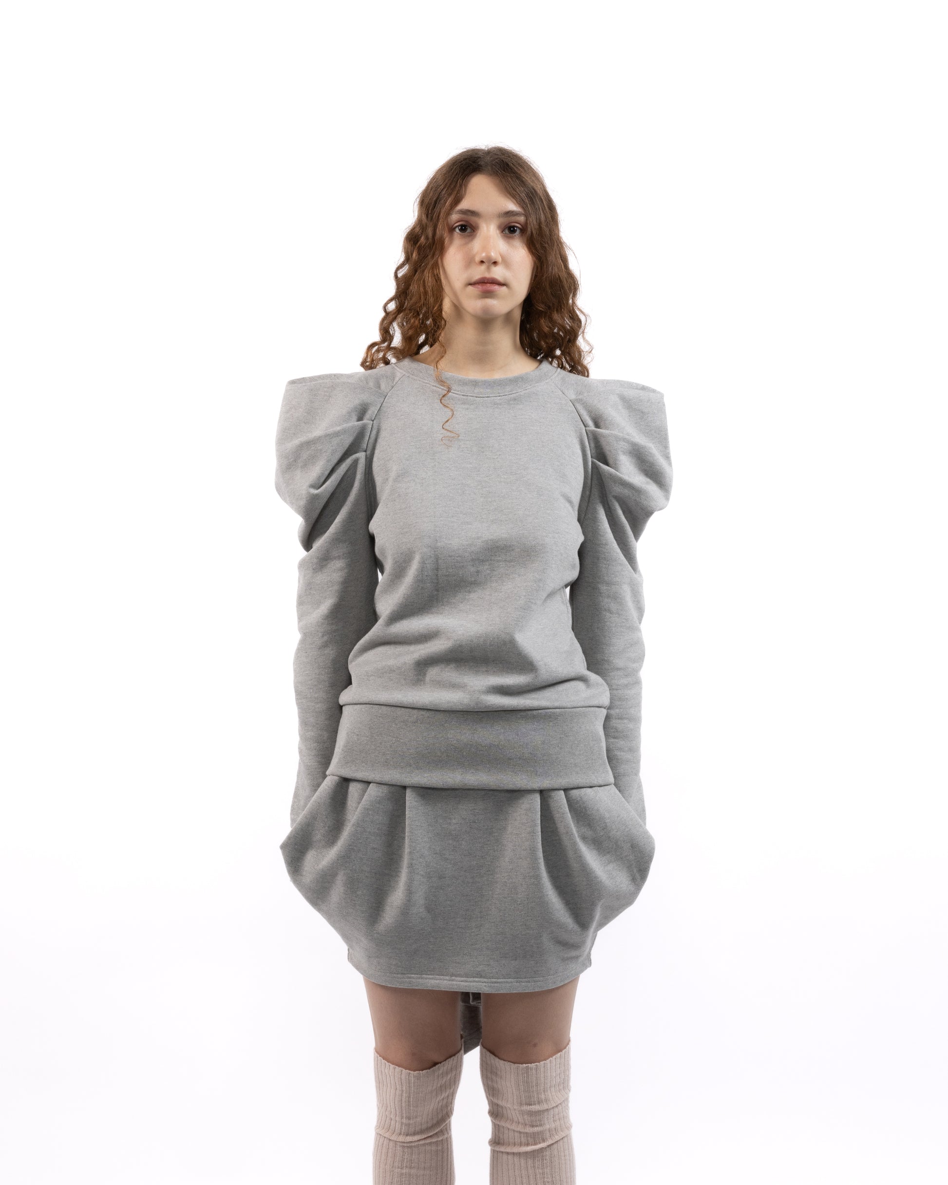 Pleated shoulder sweatshirt in grey